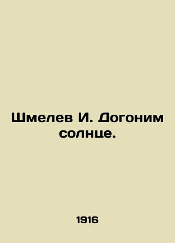 Shmelev I. Lets catch up with the sun. In Russian /Shmelev I. Dogonim solntse. Peoples School Library. Moscow Book Publishing House of Writers in Moscow 1916. We have thousands of titles and often several copies of each title may be available. Please feel free to contact us for a detailed description of the copies available. SKUalb93d571a1043e4d90.