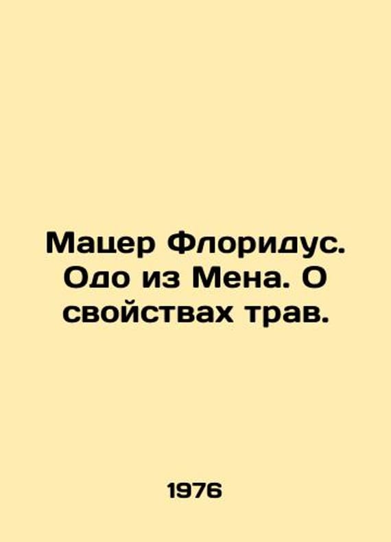 Matzer Floridus. Odo of Men. On the properties of herbs. In Russian /Matser Floridus. Odo iz Mena. O svoystvakh trav. Research, Translation from Latin, Commentary and Appendix by Y.F. Shultz. Edited by V.N. Ternovsky, Academician of the USSR Academy of Sciences. Moscow: Medicine. 1976. We have thousands of titles and often several copies of each title may be available. Please feel free to contact us for a detailed description of the copies available. SKUalb93e00e6bda485bb7.