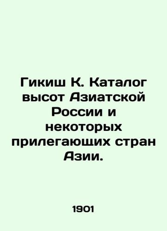 Gikish K. Catalogue of the heights of Asian Russia and some adjacent Asian countries. In Russian (ask us if in doubt)./Gikish K. Katalog vysot Aziatskoy Rossii i nekotorykh prilegayushchikh stran Azii. An imprint from the Notes of the Imperial Russian Geographical Society. St. Petersburg: Type of the Imperial Academy of Sciences. 1901. 492c. SKUalb940475f837507c84.