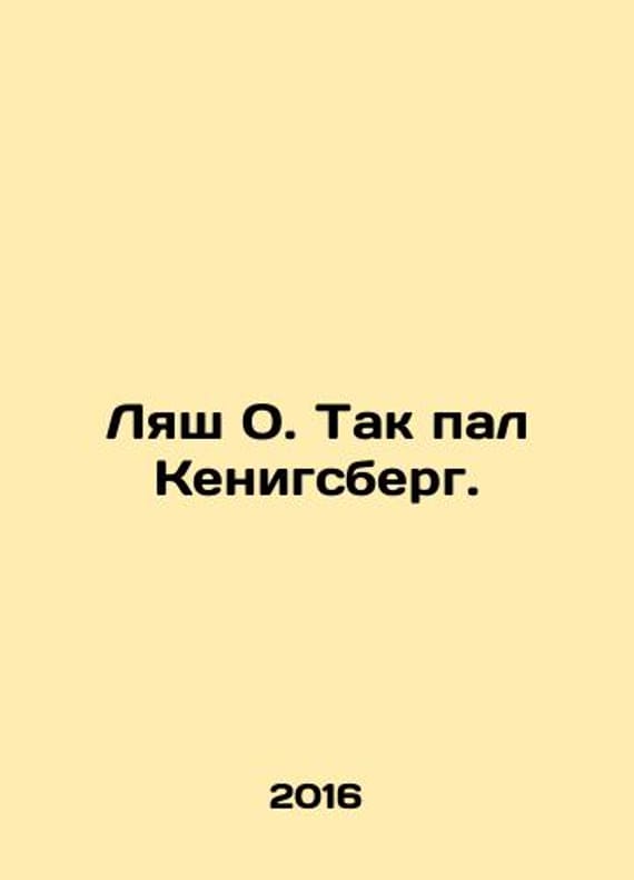 Lash O. So Knigsberg fell. In Russian /Lyash O. Tak pal Kenigsberg. In Russian.Kaliningrad Kaliningrad Book 2016. 192 p. We have thousands of titles and often several copies of each title may be available. Please feel free to contact us for a detailed description of the copies available. SKUalb94355483ab24e88b