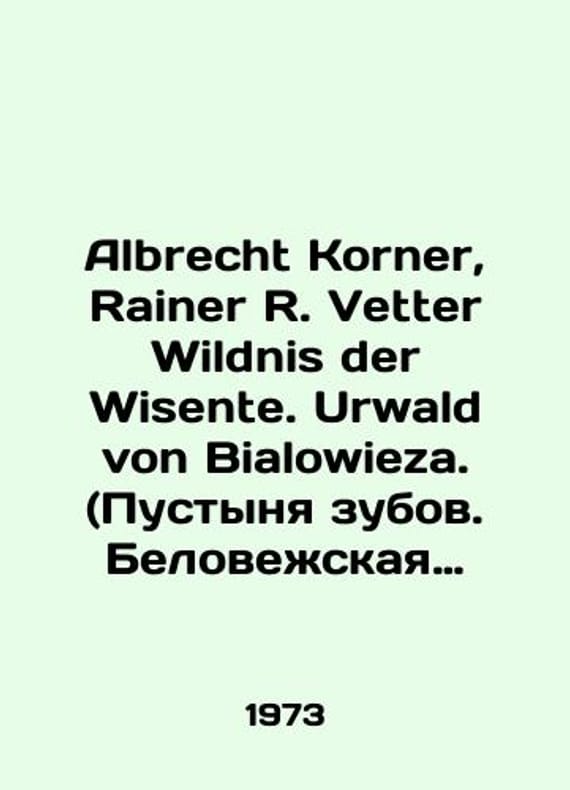 Albrecht Korner, Rainer R. Vetter Wildnis der Wisente. Urwald von Bialowieza. (Desert of teeth. Belovezhskaya Pushcha) In German /Albrecht Korner, Rainer R. Vetter Wildnis der Wisente. Urwald von Bialowieza. (Pustynya zubov. Belovezhskaya pushcha) In German .In German. Leipzig Urania 1973. 224 p. We have thousands of titles and often several copies of each title may be available. Please feel free to contact us for a detailed description of the copies available. SKUalb944f8a92e7db1a92