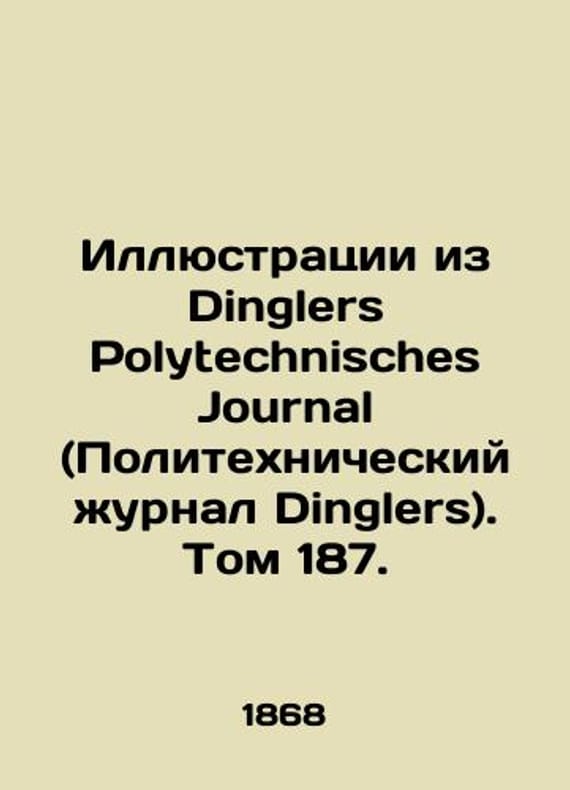 Illustrations from Dinglers Polytechnisches Journal. Volume 187. In Russian /Illyustratsii iz Dinglers Polytechnisches Journal (Politekhnicheskiy zhurnal Dinglers). Tom 187. In Russian. Augsburg. Verlag der Gottaschen Buchandlung. 1868. 8 tables. Images of various mechanisms, machines, instruments, steam engines, etc. We have thousands of titles and often several copies of each title may be available. Please feel free to contact us for a detailed description of the copies available. SKUalb94781d8e4bc284bf