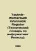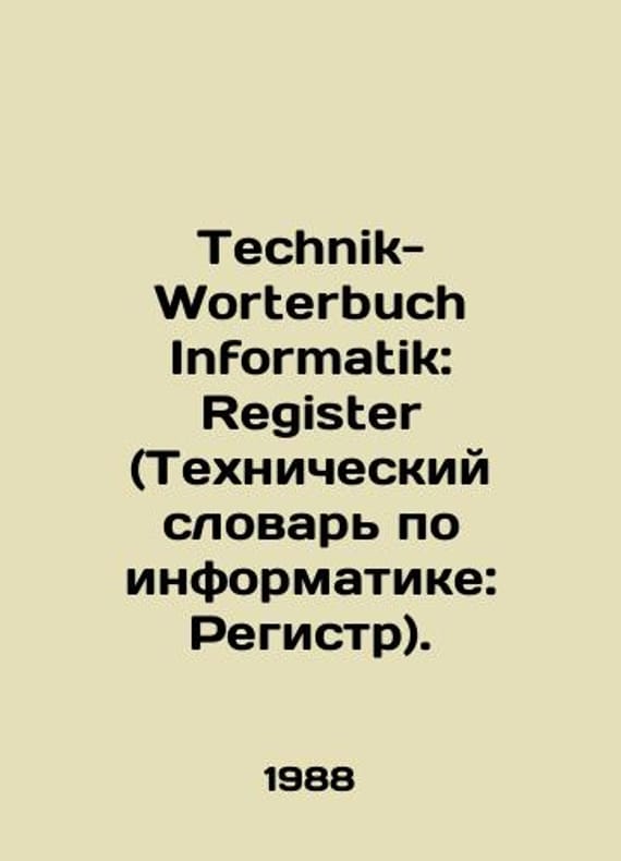 Technik-Worterbuch Informatik: Register. In Russian /Technik-Worterbuch Informatik: Register (Tekhnicheskiy slovar po informatike: Registr). In Russian. Book in English, French, German and Russian, edited by Eric Burger. Berlin. VEB Verlag Technik. 1988. 332 p. We have thousands of titles and often several copies of each title may be available. Please feel free to contact us for a detailed description of the copies available. SKUalb949c42e436f6a7e0