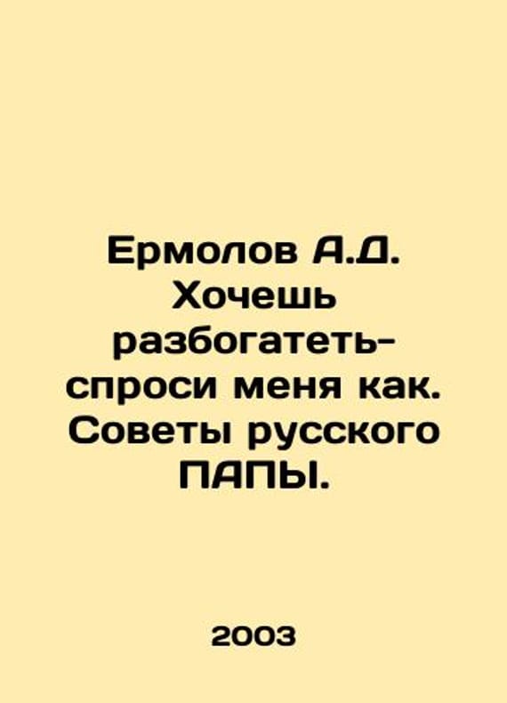 Yermolov A.D. You want to get rich - ask me how In Russian /Ermolov A.D. Khochesh razbogatet-sprosi menya kak. Sovety russkogo PAPY. Series: Money. Career. Success: Business Course. St. Petersburg: Nevsky Prospekt. 2003 year.We have thousands of titles and often several copies of each title may be available. Please feel free to contact us for a detailed description of the copies available. SKUalb94c3424164d87318.
