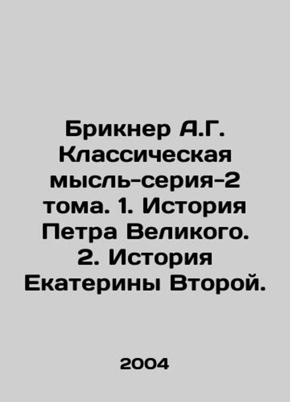 Brickner A.G. Classical Thought-Series-2 Volumes. 1. The Story of Peter the Great. 2. The Story of Catherine the Second. In Russian /Brikner A.G. Klassicheskaya mysl-seriya-2 toma. 1. Istoriya Petra Velikogo. 2. Istoriya Ekateriny Vtoroy. In Russian. M. Ast. 2004. 666 and 843ss. We have thousands of titles and often several copies of each title may be available. Please feel free to contact us for a detailed description of the copies available. SKUalb94c91296c16376f3