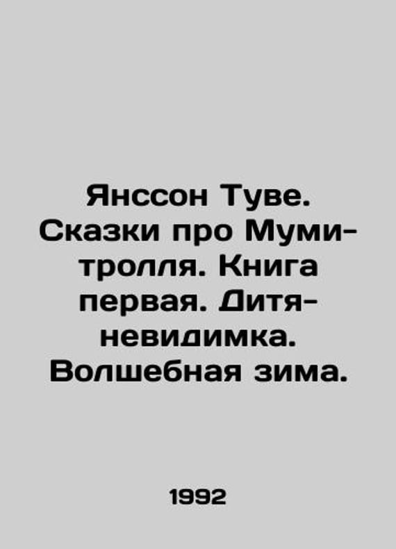 Jansson Tove. Tales of the Moomin troll. Book one. Invisible child. Magical winter. In Russian /Yansson Tuve. Skazki pro Mumi-trollya. Kniga pervaya. Ditya-nevidimka. Volshebnaya zima. Translation from Swedish by S. B. Plakhtinsky, L. J. Braude. Drawings by the author. Artist V. Y. Markovsky. Moscow. Crown Print Limited Liability Company together with Rudomino Publishing House. 1992. 288 p. We have thousands of titles and often several copies of each title may be available. Please feel free to contact us for a detailed description of the copies available. SKUalb94ca22e00674d5f1.