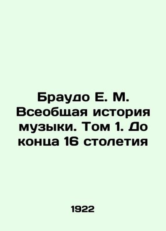 Braudo E.M. The General History of Music. Volume 1. (Until the end of the 16th century) In Russian /Braudo E.M. Vseobshchaya istoriya muzyki. Tom 1. (Do kontsa 16 stoletiya) St. Petersburg Gosizdat 1922. We have thousands of titles and often several copies of each title may be available. Please feel free to contact us for a detailed description of the copies available. The delivery of this book might be delayed beyond the usual timeframe due to extended processing and preparation before shipment, and faster shipping opSKUalbb2b8543e32bafae4
