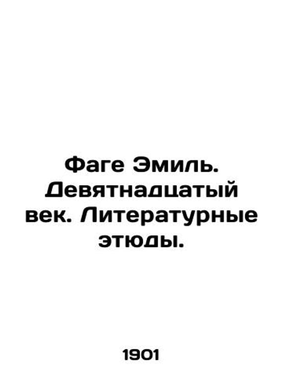 Fage Emile. The nineteenth century. Literary sketches. In Russian /Fage Emil. Devyatnadtsatyy vek. Literaturnye etyudy. M. Mamontov 1901. We have thousands of titles and often several copies of each title may be available. Please feel free to contact us for a detailed description of the copies available. SKUalb94dc56df82375b70.
