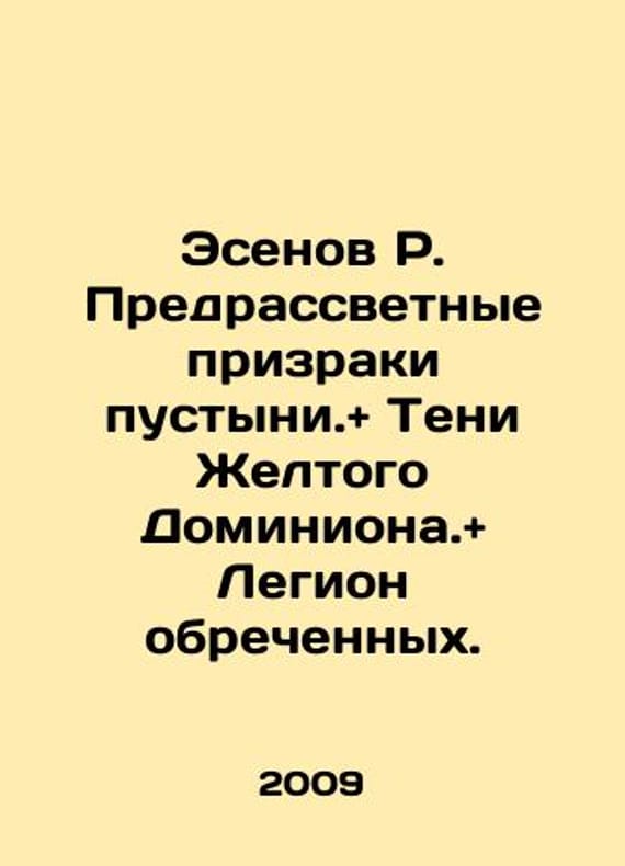 Esenov R. The pre-dawn ghosts of the desert. and the shadows of the Yellow Dominion. and the Legion of the doomed. In Russian /Esenov R. Predrassvetnye prizraki pustyni.and Teni Zheltogo Dominiona.and Legion obrechennykh. In Russian. A series of military adventures. Novel by M. Veche. 2009. 320s. We have thousands of titles and often several copies of each title may be available. Please feel free to contact us for a detailed description of the copies available. SKUalb94f693c107f52e67