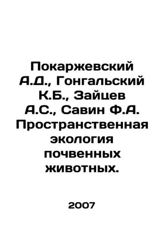 Pokarzhevsky A.D., Gongalsky K.B., Zaitsev A.S., Savin F.A. The spatial ecology of soil animals. In Russian /Pokarzhevskiy A.D., Gongalskiy K.B., Zaytsev A.S., Savin F.A. Prostranstvennaya ekologiya pochvennykh zhivotnykh.Rev. editor, Academician G. V. Dobrovolsky. Severtsov Institute of Ecology and Evolution, Russian Academy of Sciences.We have thousands of titles and often several copies of each title may be available. Please feel free to contact us for a detailed description of the copies available. SKUalb94fcc6559478e462.