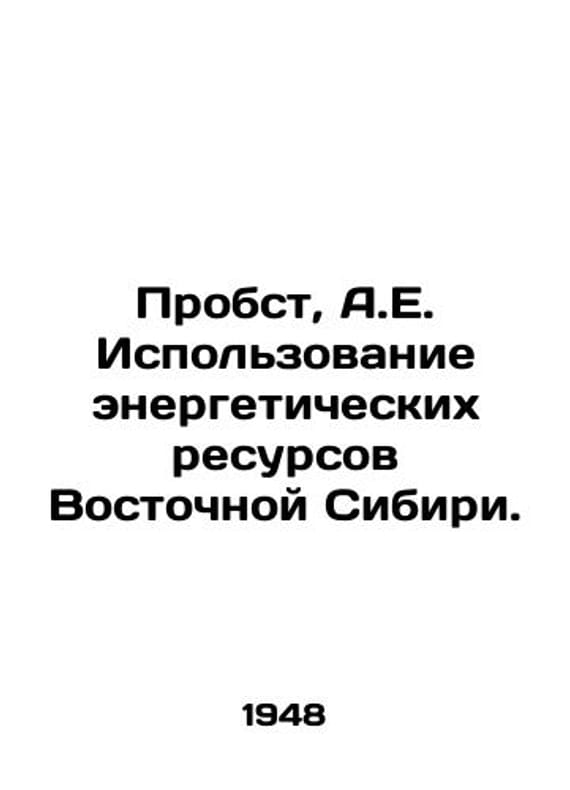 Probst A.E. Use of Eastern Siberias Energy Resources. In Russian (ask us if in doubt)/Probst A.E. Ispolzovanie energeticheskikh resursov Vostochnoy Sibiri.. Short description: In Russian (ask us if in doubt).Essays on Nature and Economy in Irkutsk Region. Irkutsk OGIZ-Irkutsk Regional Publishing House. 1948. 23 p. We have thousands of titles and often several copies of each title may be available. Please feel free to contact us for a detailed description of the copies available. SKUalb94fd44386efe9098
