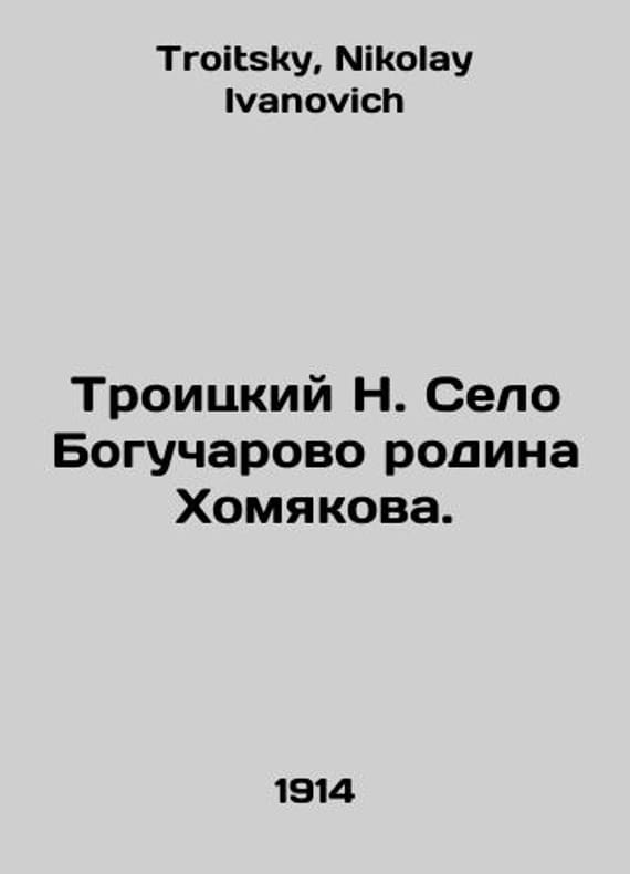 Troitsky N. Bogucharovo village is the homeland of Khamyakov. In Russian /Troitskiy N. Selo Bogucharovo rodina Khomyakova. Provincial. Tula Typography by N. K. Konysheva, 1914. 26 p. 26x17 sm. We have thousands of titles and often several copies of each title may be available. Please feel free to contact us for a detailed description of the copies available. SKUalb958b05b72e7f51ab.
