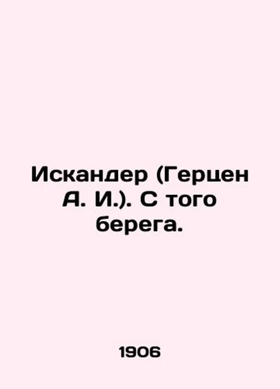 Iskander (Herzen A. I.) In Russian /Iskander (Gertsen A. I.). S togo berega. In Russian 1906. 4, 175. We have thousands of titles and often several copies of each title may be available. Please feel free to contact us for a detailed description of the copies available. SKUalb95f68fed2c665fdb