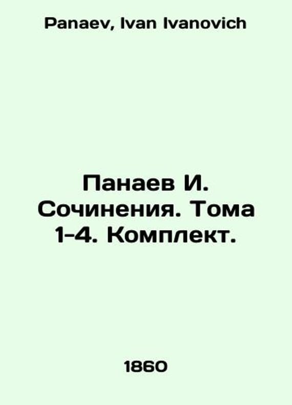 Panaev I. Works. Volumes 1-4. Set. In Russian /Panaev I. Sochineniya. Toma 1-4. Komplekt. St. Petersburg. Edition by Mr. Kushelev-Bezborodko. 1860. Whisper. We have thousands of titles and often several copies of each title may be available. Please feel free to contact us for a detailed description of the copies available. SKUalb95ffbdf508f70027.