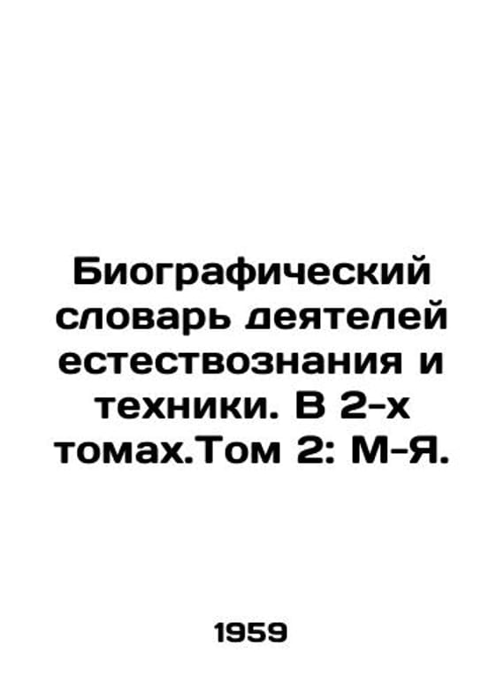 Biographical Dictionary of Science and Technology. In Volume 2: M-I. In Russian /Biograficheskiy slovar deyateley estestvoznaniya i tekhniki. V 2-kh tomakh.Tom 2: M-Ya. Institute of History of Natural Sciences and Technology of the Academy of Sciences of the USSR. Executive Editor A.A. Zvorykin. M. Bolshaya Soviet Encyclopedia 1959. We have thousands of titles and often several copies of each title may be available. Please feel free to contact us for a detailed description of the copies available. SKUalb961e5ffd289d5c8c.