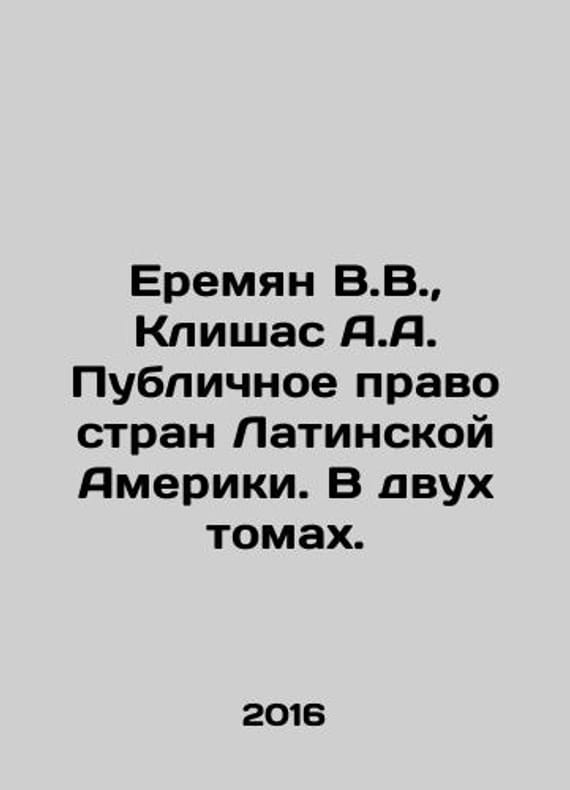 Eremyan V.V., Clichas A.A. Latin American Public Law. In two volumes. In Russian /Eremyan V.V., Klishas A.A. Publichnoe pravo stran Latinskoy Ameriki. V dvukh tomakh. In Russian. Moscow International Relations, 2016, 624p. We have thousands of titles and often several copies of each title may be available. Please feel free to contact us for a detailed description of the copies available. SKUalb96778dc1bd9d457d