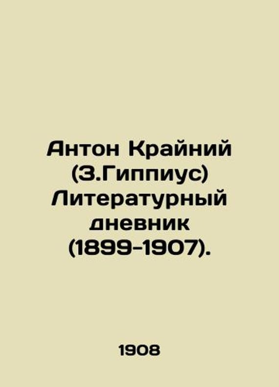 Anton Krayniy (Z.Gippius) Literary Diary (1899-1907). In Russian /Anton Krayniy (Z.Gippius) Literaturnyy dnevnik (1899-1907). In Russian. S-Pb Edition by M.V.Pirozhkov, 1908. VIII, 455 p. We have thousands of titles and often several copies of each title may be available. Please feel free to contact us for a detailed description of the copies available. SKUalb969a67d525e95f07