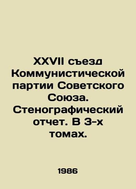 XXVII Congress of the Communist Party of the Soviet Union. Verbatim report. In 3 volumes. In Russian /XXVII sezd Kommunisticheskoy partii Sovetskogo Soyuza. Stenograficheskiy otchet. V 3-kh tomakh. In Russian. February 25-March 6, 1986. M. Politizdat, 1986. 654s. We have thousands of titles and often several copies of each title may be available. Please feel free to contact us for a detailed description of the copies available. SKUalb96b27909782665cf