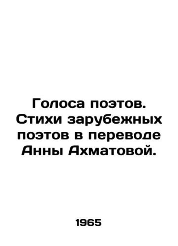 Voices of poets. Poems by foreign poets translated by Anna Akhmatova. In Russian /Golosa poetov. Stikhi zarubezhnykh poetov v perevode Anny Akhmatovoy. In Russian. Series: Masters of Poetry Translation. Issue 4. M. Progress 1965. 172 p. We have thousands of titles and often several copies of each title may be available. Please feel free to contact us for a detailed description of the copies available. SKUalb96f10726d9e006d5