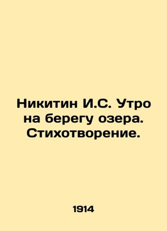 Nikitin I.S. Morning on the shore of the lake. Poem. In Russian /Nikitin I.S. Utro na beregu ozera. Stikhotvorenie. In Russian. Drawings by A.O.Walter. Moscow Edition by I.D.Sytinov, 1914, 16 p. We have thousands of titles and often several copies of each title may be available. Please feel free to contact us for a detailed description of the copies available. SKUalb9712d64b1a988a46