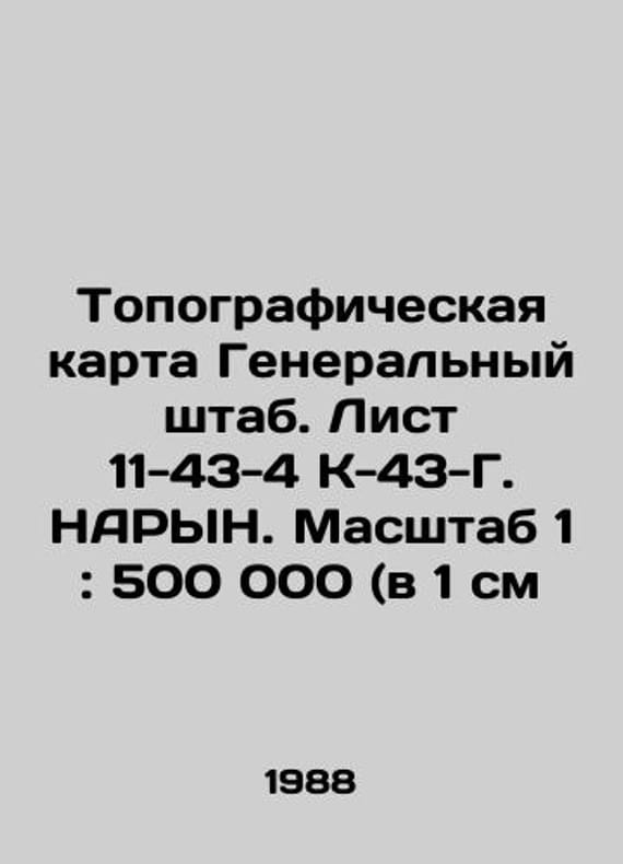 Topographic map General Staff. Sheet 11-43-4 K-43-G. Naryn. Scale 1: 500,000 (in 1 cm) In Russian /Topograficheskaya karta Generalnyy shtab. List 11-43-4 K-43-G. NARYN. Masshtab 1: 500 000 (v 1 sm In Russian. Edition 1988. Coordinate System 1942. For official use (extinguished). Moscow 1988. We have thousands of titles and often several copies of each title may be available. Please feel free to contact us for a detailed description of the copies available. SKUalb971e602e04511ff5