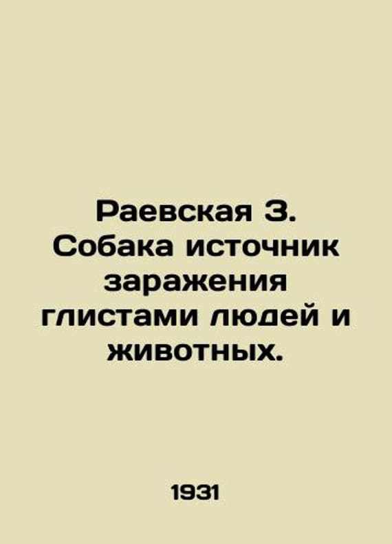 Raevskaya Z. Dog is a source of worm infestation in humans and animals. In Russian /Raevskaya Z. Sobaka istochnik zarazheniya glistami lyudey i zhivotnykh. In Russian. L. Selkolkhozgiz. 1931. 100. We have thousands of titles and often several copies of each title may be available. Please feel free to contact us for a detailed description of the copies available. SKUalb9745a8d9f58da3bf