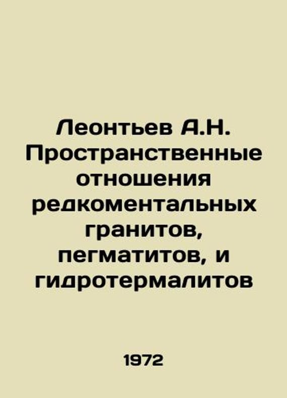 Leontev A.N. Spatial relations of rare granite, pegmatite, and hydrothermal materials In Russian /Leontev A.N. Prostranstvennye otnosheniya redkomentalnykh granitov, pegmatitov, i gidrotermalitov In Russian. Moscow Subsoil 1972. 103 p. We have thousands of titles and often several copies of each title may be available. Please feel free to contact us for a detailed description of the copies available. SKUalb97651efd73c27593
