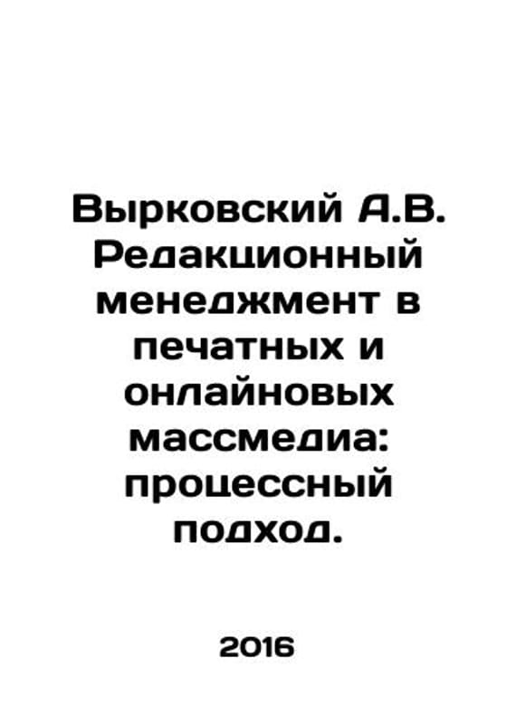 Vyrkovsky A.V. Editorial Management in Print and Online Mass Media: A Process Approach. In Russian /Vyrkovskiy A.V. Redaktsionnyy menedzhment v pechatnykh i onlaynovykh massmedia: protsessnyy podkhod. Series: Academic Monographs by M. MediaWorld 2016.We have thousands of titles and often several copies of each title may be available. Please feel free to contact us for a detailed description of the copies available. SKUalb977e7c2dff8fd1dc.