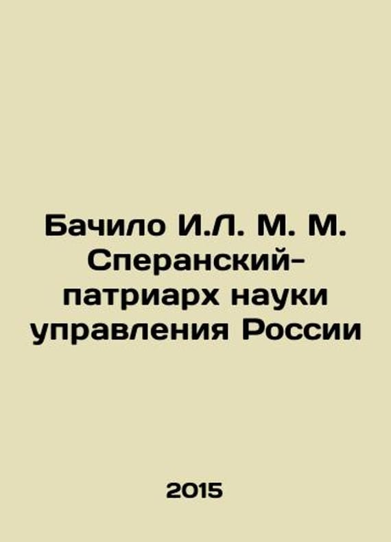 Bacilo I.L. M. Speransky Patriarch of Science of Management of Russia In Russian /Bachilo I.L. M. M. Speranskiy-patriarkh nauki upravleniya RossiiM. Canon and 2015.We have thousands of titles and often several copies of each title may be available. Please feel free to contact us for a detailed description of the copies available. SKUalb97a49ae50dee2cd2.