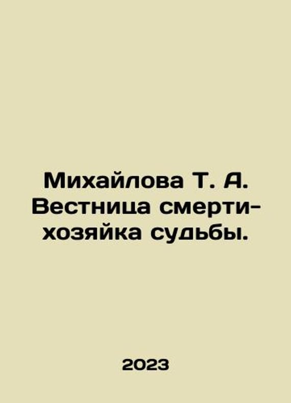 Mikhailova T. A. The Messenger of Death-Master of Destiny. In Russian /Mikhaylova T. A. Vestnitsa smerti-khozyayka sudby. In Russian. M. Alma Mater 2023 202s. We have thousands of titles and often several copies of each title may be available. Please feel free to contact us for a detailed description of the copies available. SKUalb97afc73988523dcd