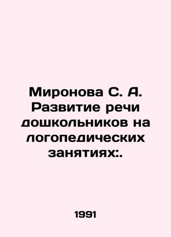Mironova S. A. Development of speech of preschool children in speech therapy classes:. In Russian /Mironova S. A. Razvitie rechi doshkolnikov na logopedicheskikh zanyatiyakh:. In Russian. Book for speech therapy - Moscow: Enlightenment, 1991. 208 p. We have thousands of titles and often several copies of each title may be available. Please feel free to contact us for a detailed description of the copies available. SKUalb97d8286eed16fa20