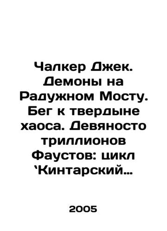 Chalker Jack. Demons on the Rainbow Bridge. Running to the Rock of Chaos. Ninety trillion Faust: The Quintar Marathon Cycle. Fantasy Novels. In Russian /Chalker Dzhek. Demony na Raduzhnom Mostu. Beg k tverdyne khaosa. Devyanosto trillionov Faustov: tsikl Kintarskiy Marafon. Fantasticheskie romany. In Russian. The Golden Library of Fiction. Translated from English by I. Teterina (Demons on the Rainbow Bridge), M. Nikolaeva (Running to the Rock of Chaos), A. Nesterenok (Ninety Trilogy of Faust). Serial design by A. Kudryavtsev. Moscow. AST: LUX. 2005. 813 (3) p. (ISBN: 5-17-028051-3. 5170280513) The trilogy of Quintar Marathon is in one volume We have thousands of titles and often several copies of each title may be available. Please feel free to contact us for a detailed description of the copies available. SKUalb97df382e487c517b