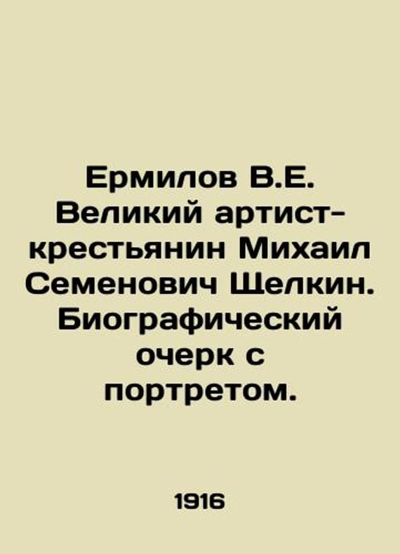 Ermilov V.E. The great peasant artist Mikhail Semyonovich Shchelkin. A biography with a portrait. In Russian /Ermilov V.E. Velikiy artist-krestyanin Mikhail Semenovich Shchelkin. Biograficheskiy ocherk s portretom. In Russian. A bib for the family and school. M. Typography by K.L.Menshov. 1916. 96 p. We have thousands of titles and often several copies of each title may be available. Please feel free to contact us for a detailed description of the copies available. SKUalb97f8bb22eb84ab64