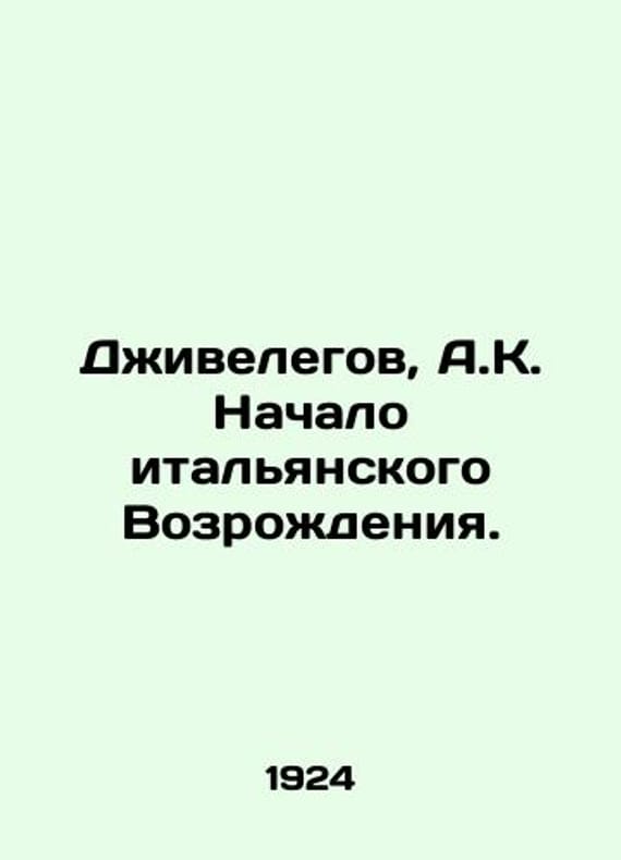 Jivelegov, A.K. The Beginning of the Italian Renaissance. In Russian /Dzhivelegov, A.K. Nachalo italyanskogo Vozrozhdeniya. Edition 2, revised by M. OGIZ 1924. We have thousands of titles and often several copies of each title may be available. Please feel free to contact us for a detailed description of the copies available. SKUalb9808177c8b77831f.