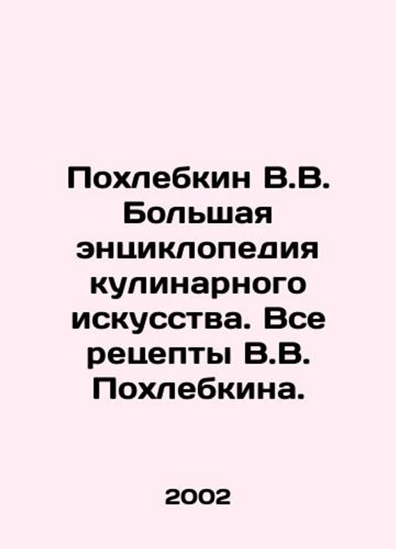 Pokhlebkin V.V. The large encyclopedia of culinary art. All recipes by V.V. Pokhlebkin. In Russian /Pokhlebkin V.V. Bolshaya entsiklopediya kulinarnogo iskusstva. Vse retsepty V.V. Pokhlebkina. M. Centropolygraph. 2002. 975 p. We have thousands of titles and often several copies of each title may be available. Please feel free to contact us for a detailed description of the copies available. SKUalb988318bec93df724.