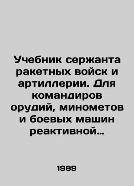 A sergeants manual for rocket forces and artillery. For commanders of artillery guns, mortars and rocket-propelled vehicles. In Russian /Uchebnik serzhanta raketnykh voysk i artillerii. Dlya komandirov orudiy, minometov i boevykh mashin reaktivnoy artillerii. Approved by the Chief of Rocket Forces and Artillery of the Land Forces. Editor N. V. Danilenkov. M. Voenizdat, 1989. 224s. We have thousands of titles and often several copies of each title may be available. Please feel free to contact us for a detailed description of the copies available. SKUalb988a71fd28e457b5.