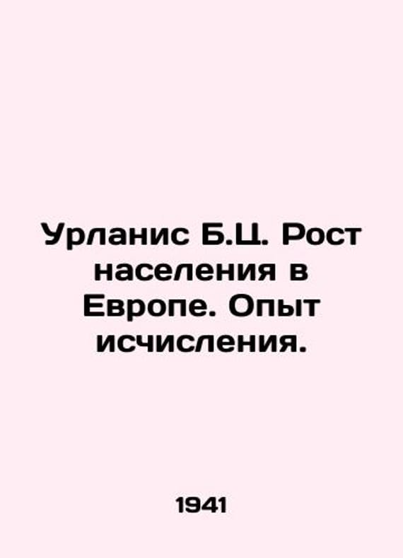 Urlanis B.Z. Population Growth in Europe. The Experience of Calculation. In Russian /Urlanis B.Ts. Rost naseleniya v Evrope. Opyt ischisleniya. M. OGIZ-Gopolitizdat. 1941. 436s. We have thousands of titles and often several copies of each title may be available. Please feel free to contact us for a detailed description of the copies available. SKUalb99075ce27d45dda8.