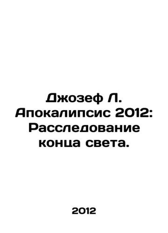Joseph L. Apocalypse 2012: Investigating the End of the World. In Russian /Dzhozef L. Apokalipsis 2012: Rassledovanie kontsa sveta. M. 2011. 352 p.. We have thousands of titles and often several copies of each title may be available. Please feel free to contact us for a detailed description of the copies available. SKUalb990f10d014a519db.