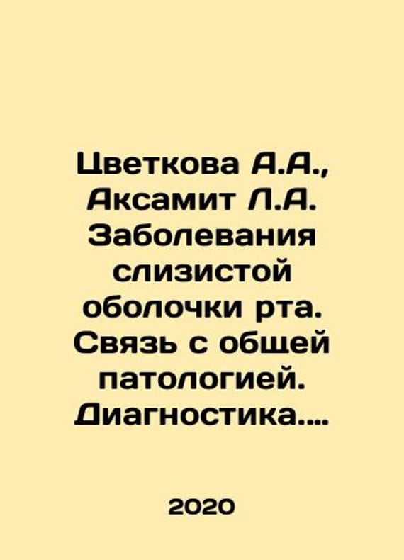 Tsvetkova A.A., Axamit L.A. Diseases of the mucous membrane of the mouth. Connection with general pathology. Diagnosis. Treatment. In Russian /Tsvetkova A.A., Aksamit L.A. Zabolevaniya slizistoy obolochki rta. Svyaz s obshchey patologiey. Diagnostika. Lechenie. M MedPressInform 2020 288 pp. We have thousands of titles and often several copies of each title may be available. Please feel free to contact us for a detailed description of the copies available. SKUalb991679d23f2d3b1e.