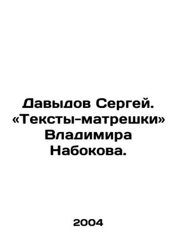 Sergey Davydov. Matryoshka texts from Vladimir Nabokov. In Russian /Davydov Sergey. «Teksty-matreshki» Vladimira Nabokova. St. Petersburg: Kircideli, 2004, 160 p. We have thousands of titles and often several copies of each title may be available. Please feel free to contact us for a detailed description of the copies available. SKUalb9943c6c855529a86.