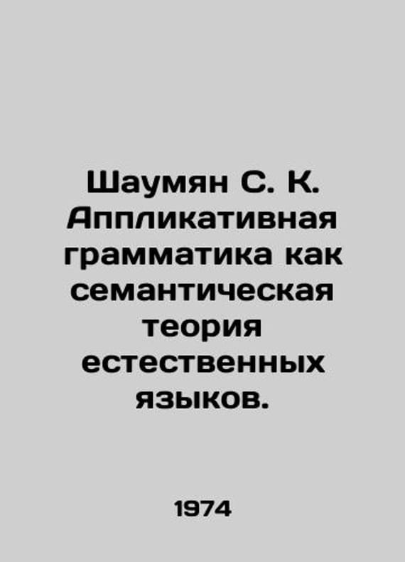 Shaumyan S. K. Applicative grammar as a semantic theory of natural languages. In Russian /Shaumyan S. K. Applikativnaya grammatika kak semanticheskaya teoriya estestvennykh yazykov. Moscow, Science Publishing House, 1974, 204 p. We have thousands of titles and often several copies of each title may be available. Please feel free to contact us for a detailed description of the copies available. SKUalb99795c974af941c5.