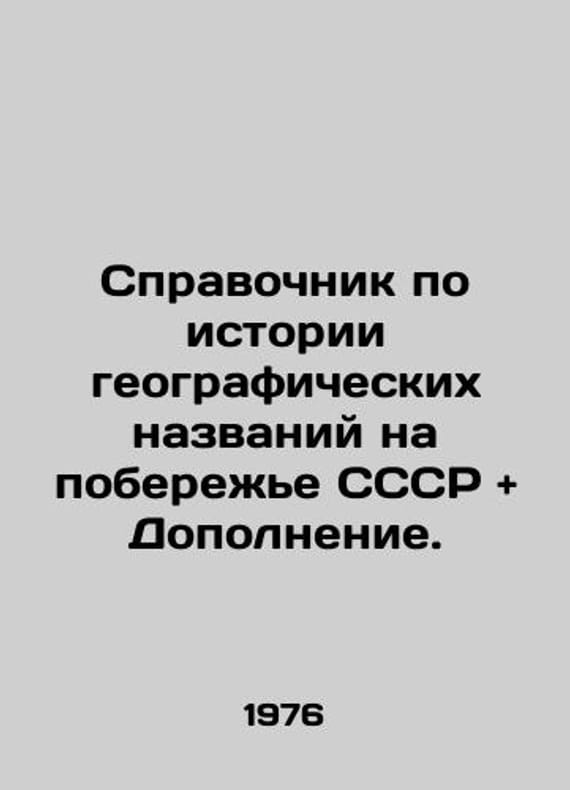 Reference book on the history of geographical names on the coast of the USSR. and Supplement to the Reference book on the history of geographical names on the coast of the USSR. In Russian /Spravochnik po istorii geograficheskikh nazvaniy na poberezhe SSSR. and Dopolnenie k Spravochniku po istorii geograficheskikh nazvaniy na poberezhe SSSR. Moscow. Main Department of Navigation and Oceanography of the Ministry of Defence of the USSR. 1976-1977. 372 p. We have thousands of titles and often several copies of each title may be available. Please feel free to contact us for a detailed description of the copies available. SKUalb9b54f768113991f9.