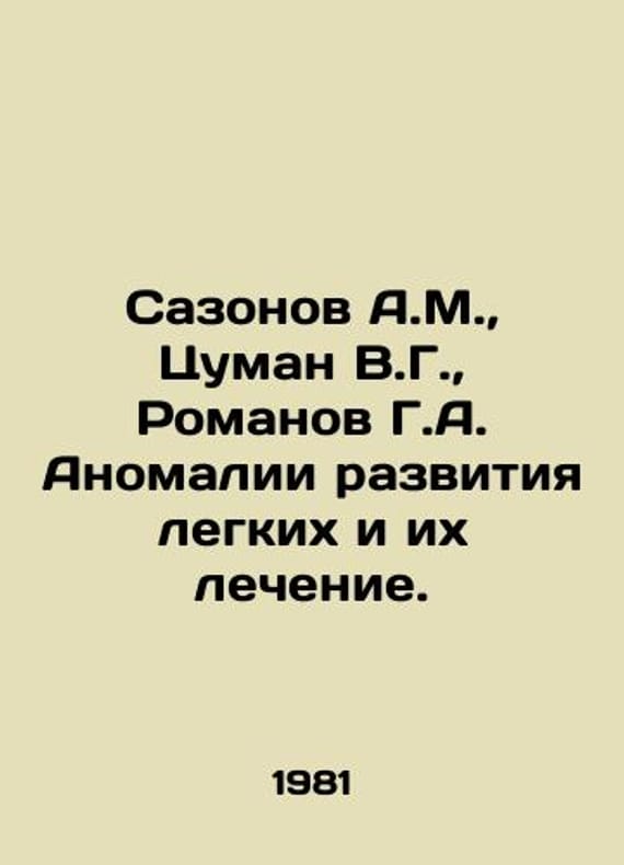 Sazonov A.M., Tsuman V.G., Romanov G.A. Lung anomalies and their treatment. In Russian /Sazonov A.M., Tsuman V.G., Romanov G.A. Anomalii razvitiya legkikh i ikh lechenie. Monograph M Medicine 1981. We have thousands of titles and often several copies of each title may be available. Please feel free to contact us for a detailed description of the copies available. SKUalb99c952305b9c9360.