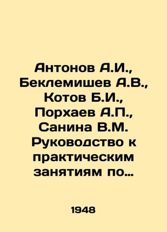 Antonov A.I., Beklemishev A.V., Kotov B.I., Porkhaev A., Sanina V.M. Guide to Practical Physics Classes. In Russian /Antonov A.I., Beklemishev A.V., Kotov B.I., Porkhaev A., Sanina V.M. Rukovodstvo k prakticheskim zanyatiyam po fizike. Moscow Academy of Sciences of the USSR 1948. We have thousands of titles and often several copies of each title may be available. Please feel free to contact us for a detailed description of the copies available. SKUalb99d0f3ea5a7a83d0.