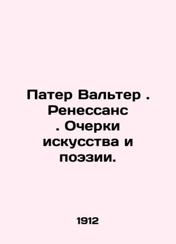 Walter Pater. Renaissance Essays on Art and Poetry In Russian /Pater Valter (Uolter). Renessans. Ocherki iskusstva i poezii Translated from the latest English edition of S. G. Zaimovskys The Problems of Aesthetics, 1912. 194s. We have thousands of titles and often several copies of each title may be available. Please feel free to contact us for a detailed description of the copies available. SKUalb3fc7b3ae3342d24c.