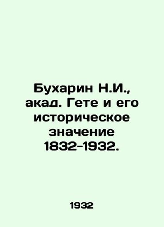 N.I. Bukharin, Acad. Goethe and his historical significance 1832-1932. In Russian /Bukharin N.I., akad. Gete i ego istoricheskoe znachenie 1832-1932. Speech delivered at the solemn meeting of the USSR Academy of Sciences dedicated to the 100th anniversary of Goethes death. We have thousands of titles and often several copies of each title may be available. Please feel free to contact us for a detailed description of the copies available. The delivery of this book might be delayed beyond the usual timeframe due to extended processing and preparation before shipment, and faster shipping opSKUalb9a21aee8b5c72704