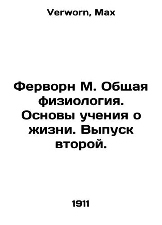 Vervorne M. General Physiology. Fundamentals of Life Teaching. Issue two. In Russian /Fervorn M. Obshchaya fiziologiya. Osnovy ucheniya o zhizni. Vypusk vtoroy. M. Book Publishing House Contemporary Problems of 1911. 6, 474 p. We have thousands of titles and often several copies of each title may be available. Please feel free to contact us for a detailed description of the copies available. SKUalb9a297828bbee21d6.