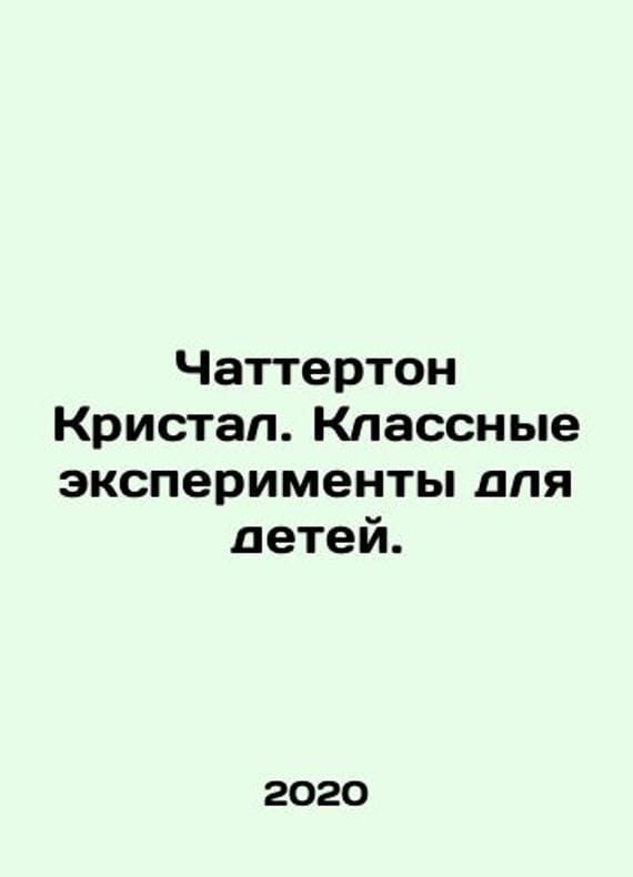 Chatterton Crystal. Cool experiments for children. In Russian /Chatterton Kristal. Klassnye eksperimenty dlya detey. Moscow Filipok and By 2020. We have thousands of titles and often several copies of each title may be available. Please feel free to contact us for a detailed description of the copies available. SKUalb9a543515037fb650.
