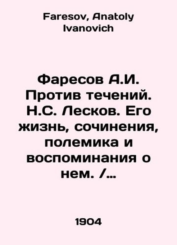 Faresov A.I. Against the Currents. N.S. Leskov. His Life, Works, Polemics and Memories About Him In Russian /Faresov A.I. Protiv techeniy. N.S. Leskov. Ego zhizn, sochineniya, polemika i vospominaniya o nem With a rare portrait of St. Petersburg type. M.Merkushev 1904. 412 and 1 portrait. We have thousands of titles and often several copies of each title may be available. Please feel free to contact us for a detailed description of the copies available. SKUalbea44ebf97e13f94b.
