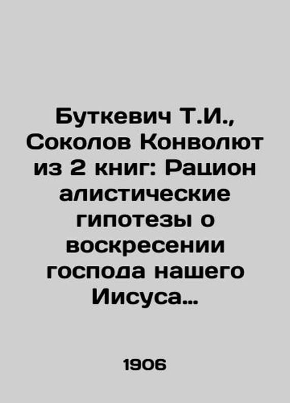 Butkevich T.I. Sokolov Convolutee from 2 books: Rationalist hypotheses about the resurrection of our Lord Jesus Christ. Theological academic readings by St. John the Bishop of Smolensk. In Russian (ask us if in doubt)/Butkevich T.I. Sokolov Konvolyut iz 2 knig: Ratsionalisticheskie gipotezy o voskresenii gospoda nashego Iisusa Khrista. Bogoslovskie akademicheskie chteniya preosvyashchennogo Ioanna episkopa Smolenskogo. Short description: In Russian (ask us if in doubt).From the University Lectures of 1904 Kharkiv. St. Petersburg. Typography Peace Labor. Synodal Printing House. 1910 1906. 6 320 II + VIII 312 p. Lasse. Format 22 6x16cm. We have thousands of titles and often several copies of each title may be available. Please feel free to contact us for a detailed description of the copies available. SKUalb9a830da8d9c4925c